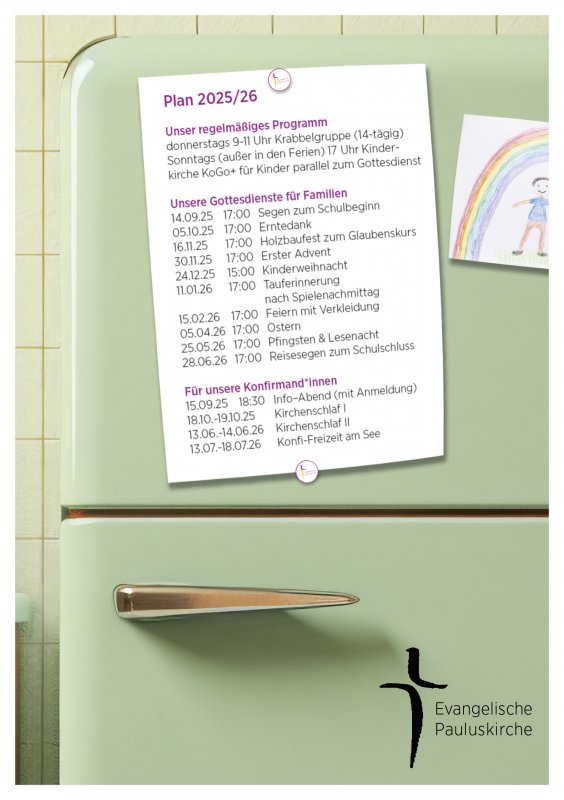 Das Kinder- und Familienprogramm 2025/26 Sei dabei!11. Jan 2026 von pauluskirche Weitere Artikel ‹ Kinderkirche immer sonntags Newsletter abonnieren ›