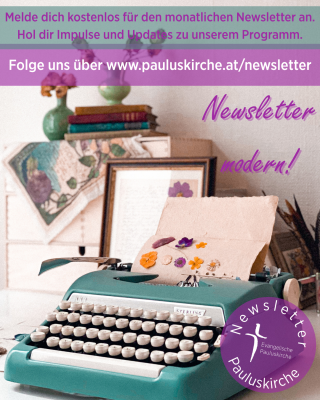 Unser monatlicher Newsletter beginnt immer mit einem geistlichen Impuls und versorgt dich dann mit aktuellen Information aus dem Gemeindeleben und dem Programm der Pauluskirche. Probier's doch einfach aus!